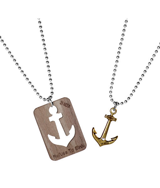 - Una catenina con placchetta in legno marino, sagomata internamente per “accogliere” l’ancora